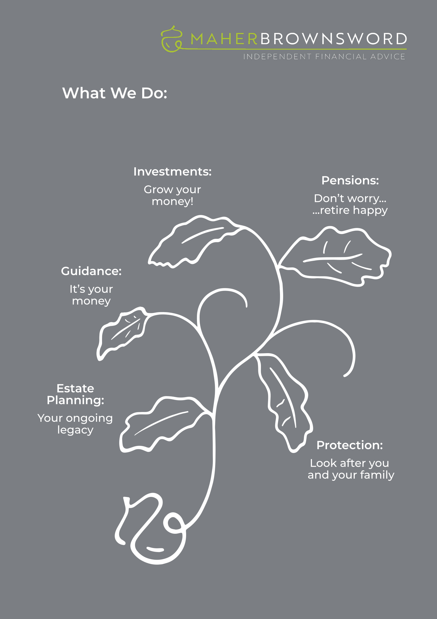 As financial advisors we provide individuals and businesses with practical and relevant solutions to help them to meet their financial objectives. Some of the key areas we advise on are listed below. Simply click on the relevant box to watch a video explaining the Service (this will open a new tab). Of course, we'll be happy to discuss your own personal situation and goals with you if you have any further questions.